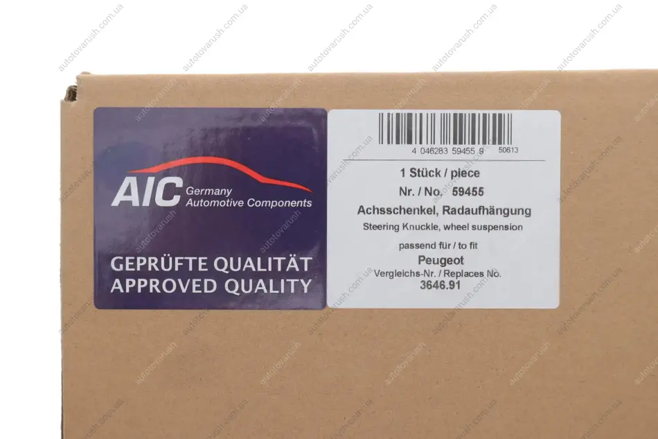 59455 AIC Кулак поворотний (цапфа) Citroen C2/C3/C4/Peugeot 207/208/301 03- (L) передний мост слева
