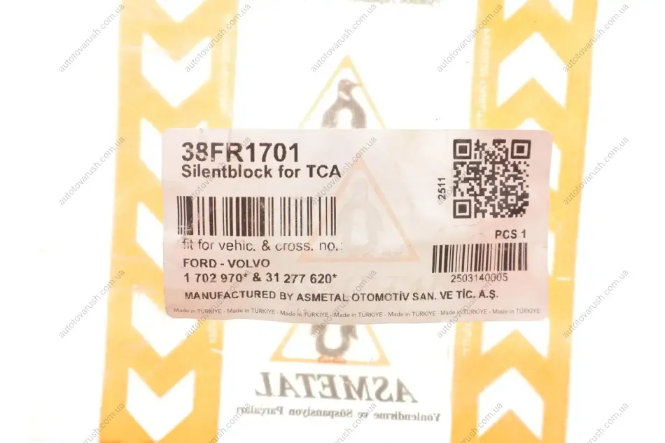 38FR1701 ASMETAL Сайлентблок важеля (переднього/спереду) Volvo V40/Ford C-Max II/Focus III/Mazda 3 1.0- 08-