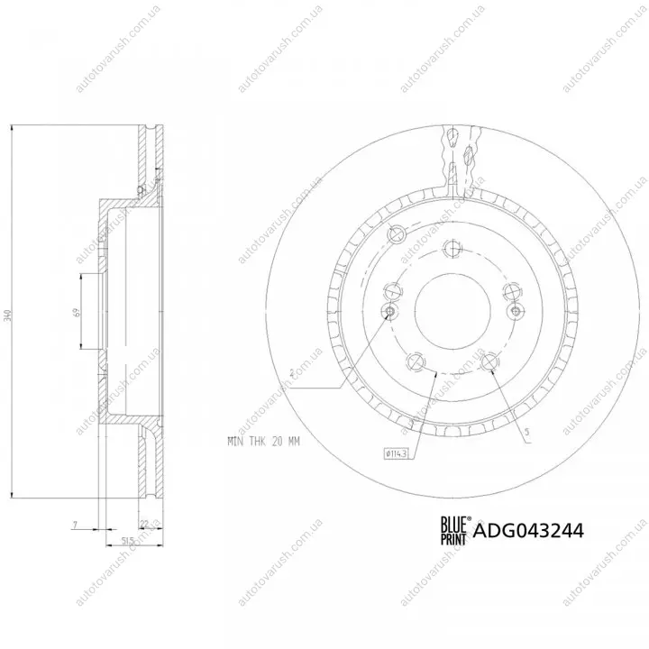 ADG043244 BLUE PRINT BLUE PRINT KIA Гальмівний диск задній STINGER (CK) 3.3 T-GDi 17- задний мост
