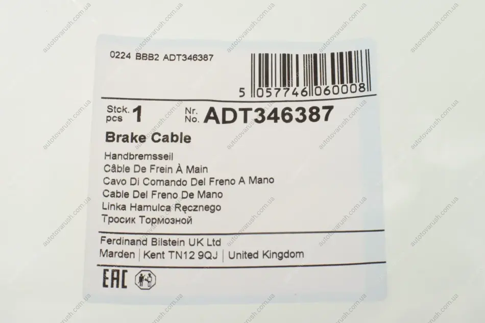 ADT346387 BLUE PRINT Трос ручника (задний) (R) Toyota Auris 07- (1920/1745mm) сзади справа