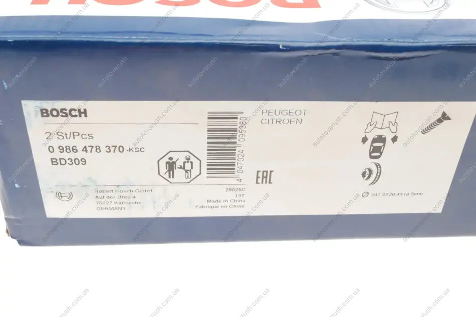 0 986 478 370 BOSCH Диск тормозной