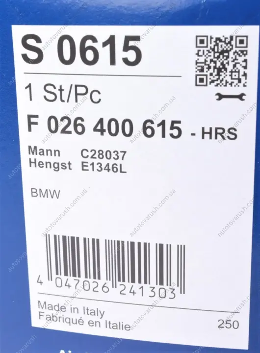 Аналоги "F 026 400 615 BOSCH":