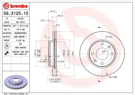 09.3125.10 BREMBO Гальмівний диск