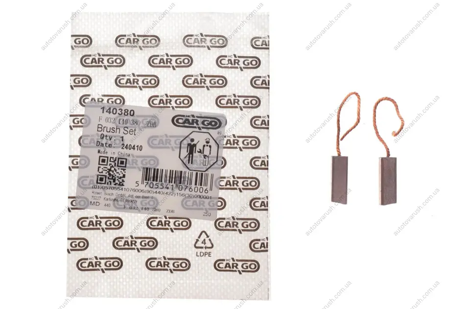 F 032 140 380 CARGO Щітки генератора Opel Astra F/Vectra A 1.7TDS (кутні) = 140380