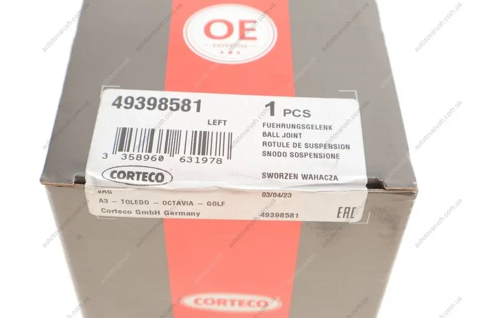49398581 CORTECO Опора шаровая (передняя/снизу/L) Audi A3 -93/VW Golf IV -06 передний мост