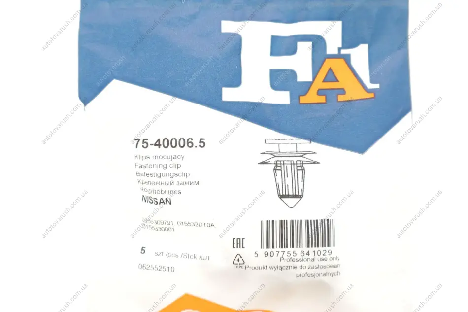 75-40006.5 Fischer Automotive One (FA1) Кліпса кріплення (к-кт 5 шт) Nissan Qashqai 06-/X-Trail 07-