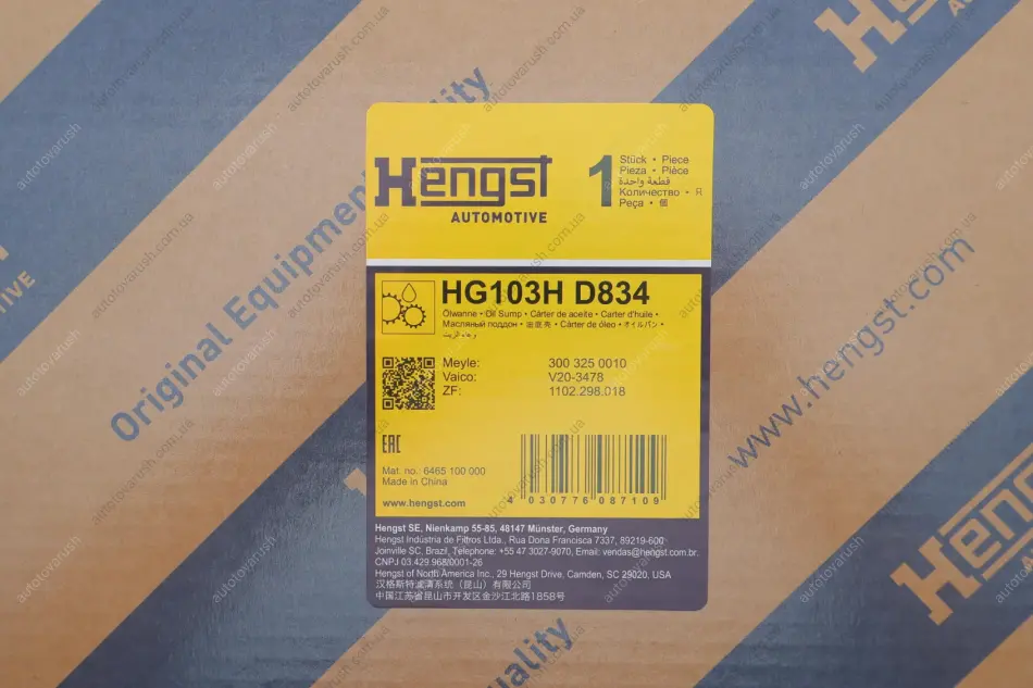 Немецкая компания Hengst основанная в 1958 году, специализируется на производстве фильтрующих элементов для автомобилей. Бренд является крупным поставщиком на конвейеры некоторых немецких автопроизводителей. Продукция Hengst сертифицирована согласно ISO 9001, ISO/TS 16949 и ISO 14001, что гарантирует высокое качество и большую конкурентоспособность запчастей компании.