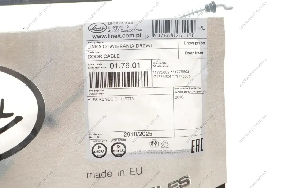 01.76.01 LINEX Трос дверей (передніх) Alfa Romeo Giulietta 10- (543/455 mm)