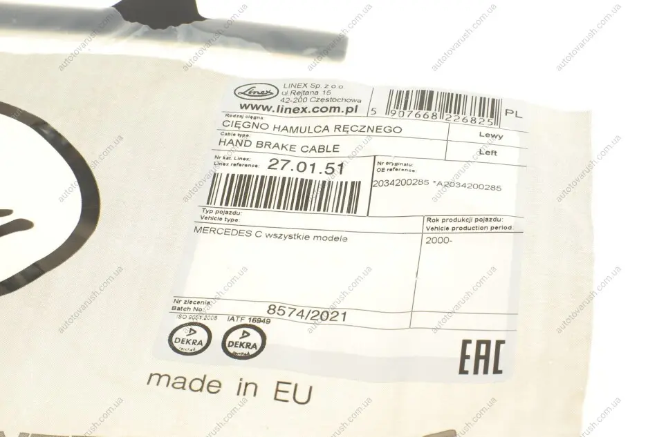 27.01.51 LINEX Трос ручника (задний) (L) MB C-class (W203) 00-08 (925/805mm) слева