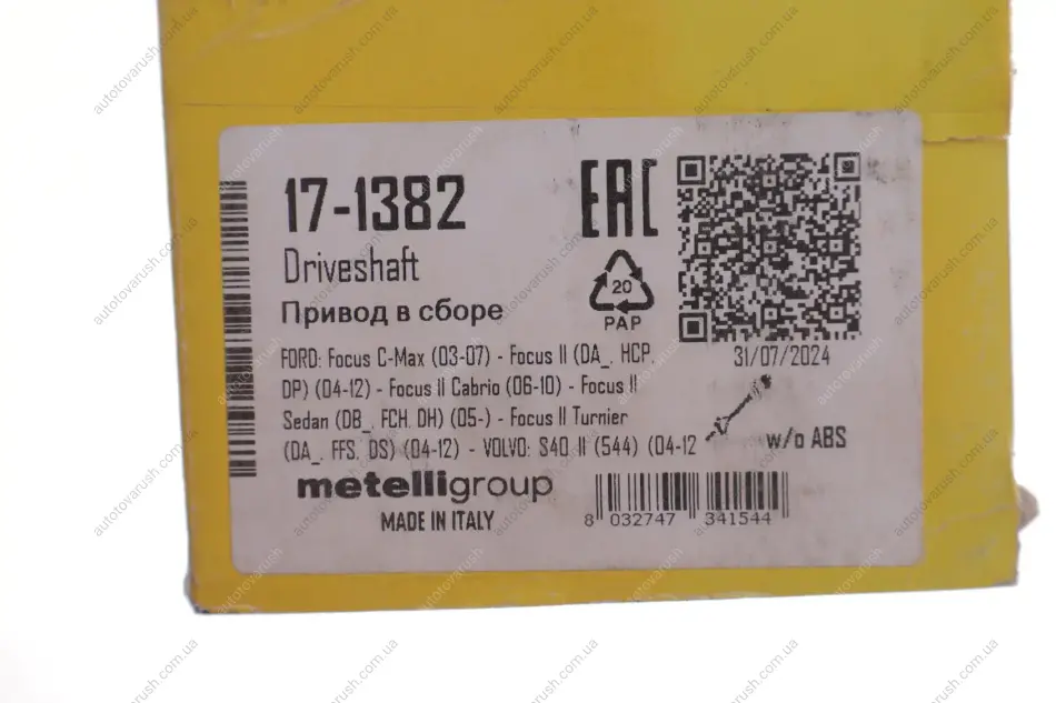 17-1382 Metelli Піввісь (передня) Ford Focus/Volvo S40/V50 04-12 (R) (36x26x919)