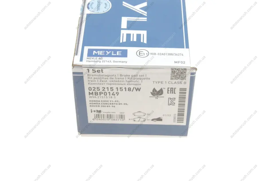025 215 1518/W MEYLE Колодки тормозные (передние) Honda Civic VI/VII -05 передние