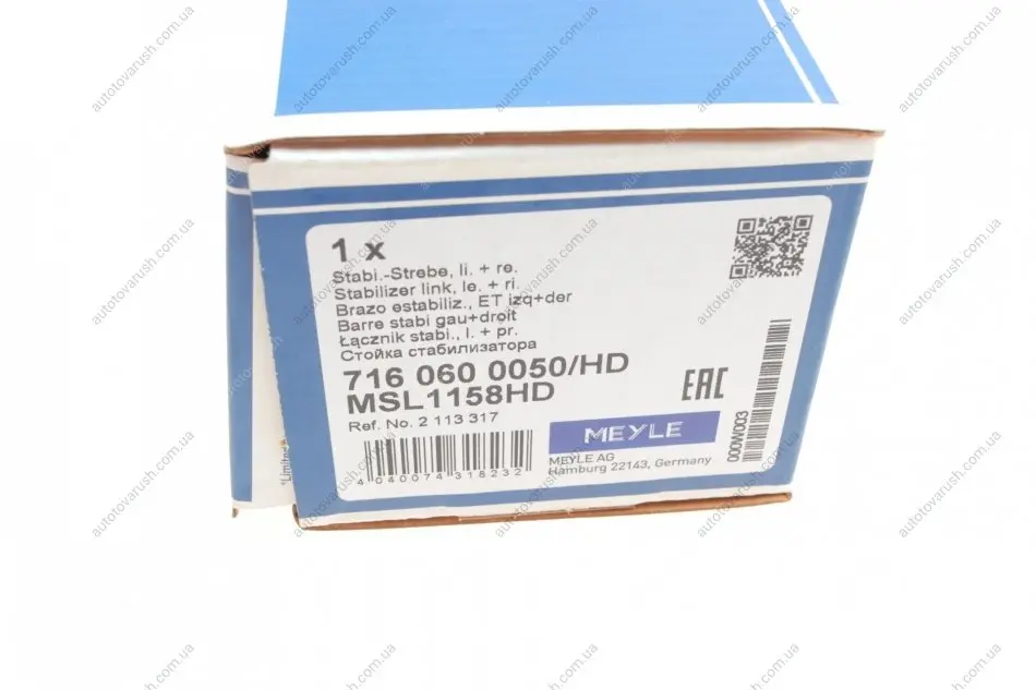 Meyle – известный немецкий бренд. Компания была основана в 1958 году, более чем за 60 лет фирма прошла путь от простого экспортера деталей до крупной компании со своими собственными производственными мощностями. Основное производство сосредоточено в Китае. Все производится на немецком оборудовании под контролем немецких инженеров. Главный офис компании находится в городе Гамбург (Германия). Основной ассортимент Meyle - детали для Европейских марок авто: втулки, сайлентблоки, подшипники, стойки стабилизатора, амортизаторы, демпферы, рычаги, помпы, элементы рулевого управления, детали сцепления. Премиум линейка продукции cиндексом – HD(hard drive) позиционируется как полностью соответствующая качеству оригинала.