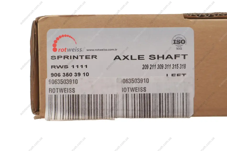 9063503910 ROTWEISS Піввісь (задня) MB Sprinter/VW Crafter 06- (L) (d=39.45/z=30) (без підшипника)