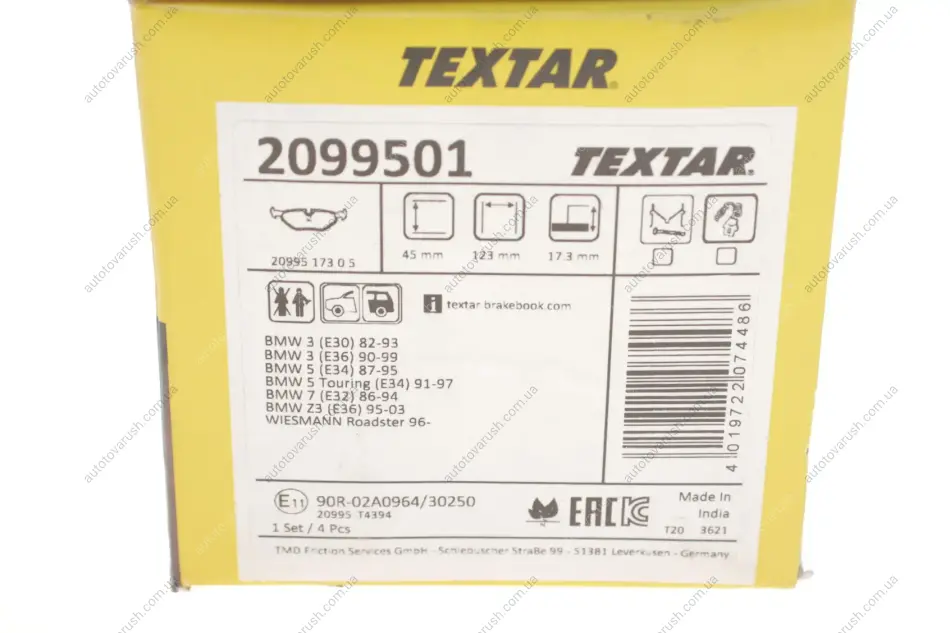2099501 TEXTAR Колодки тормозные (задние) BMW 3 (E30/E36/E46) 90-98/ 5 (E34) -97 (Teves) Q+