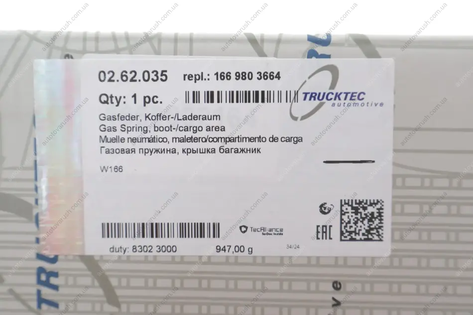 02.62.035 TRUCKTEC Амортизатор кришки багажника MB M-class (W166) 11-15