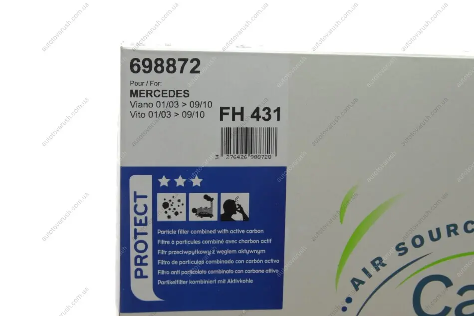 698872 Valeo Фільтр салону MB Vito (W639) 03- (вугільний)