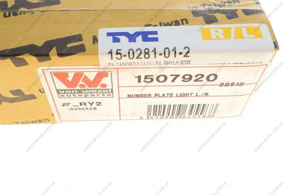 1507920 Van Wezel Фонарь освещения номерного знака Dacia Logan/Sandero 04- сзади