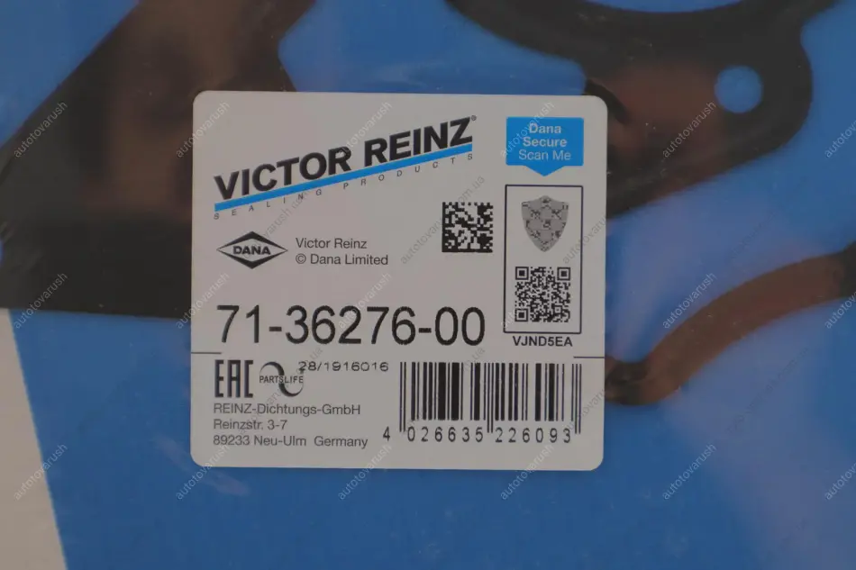 Victor Reinz – бренд, созданный в результате покупки американской компанией Dana немецкой Reinz в 1993 году. Сама компания Reinz начала свою деятельность в 1920 году. Под данным брендом владельцы авто могут приобрести: различные уплотнительные материалы (прокладки, сальники и т.п.), герметики, болты ГБЦ и маслосъемные колпачки.