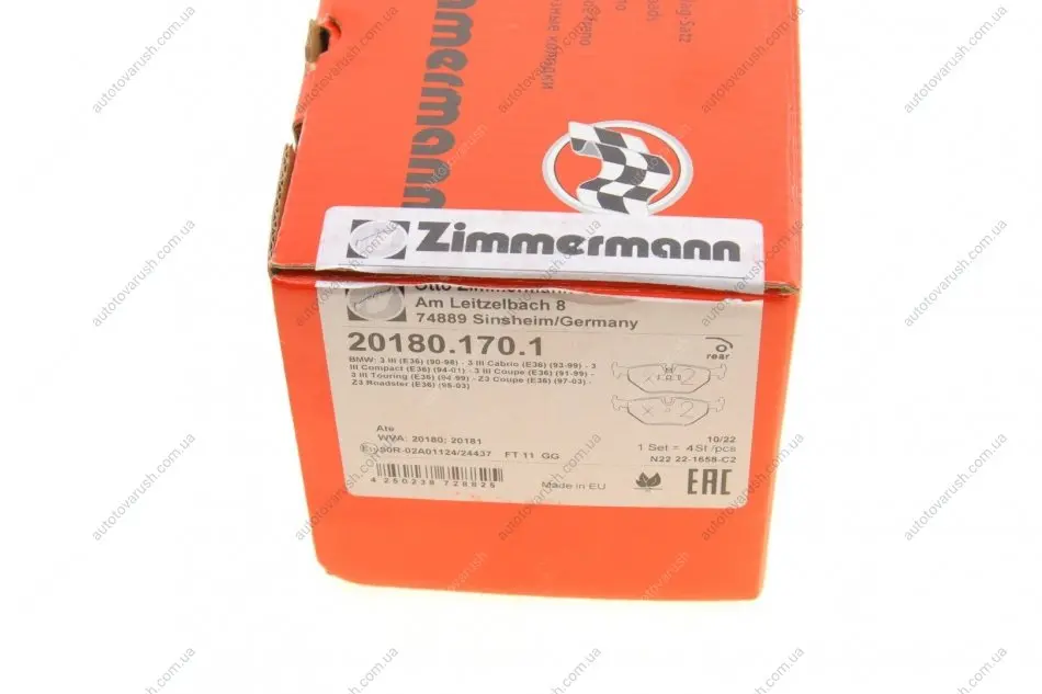 20180.170.1 ZIMMERMANN Колодки тормозные (задние) BMW 3 (E46) 98-