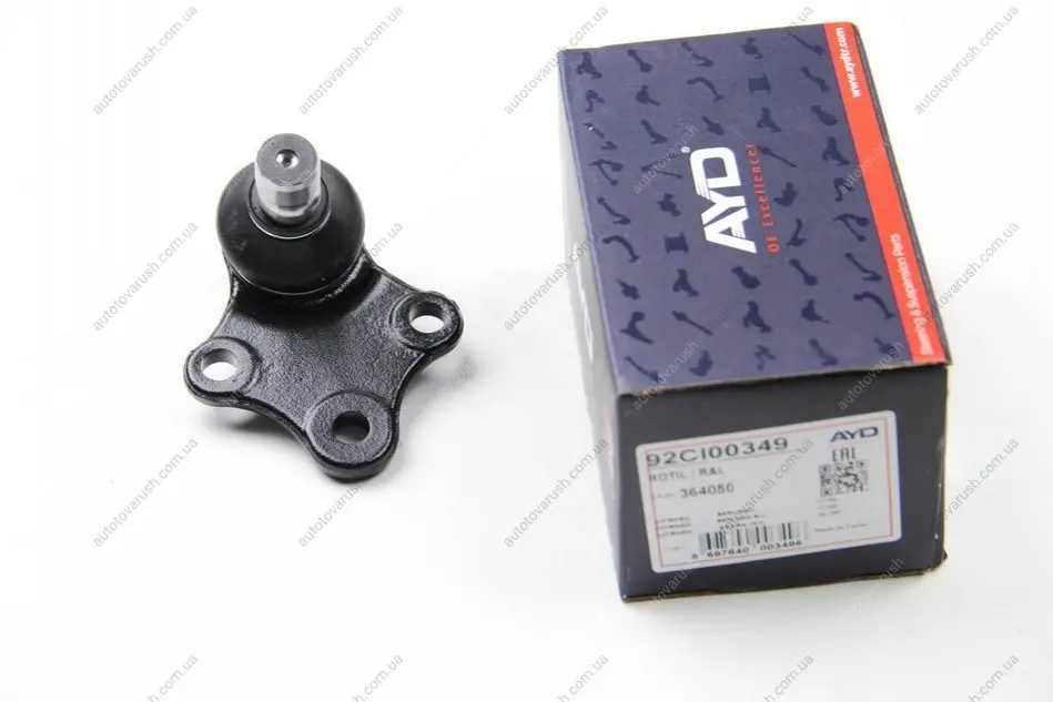 92-00349 AYD Опора кульова (кін 18mm) PEUGEOT PARTNER (-08), CITROEN BERLINGO (-11), XSARA (-05) (92-00349) AYD передня вісь. двосторонньо