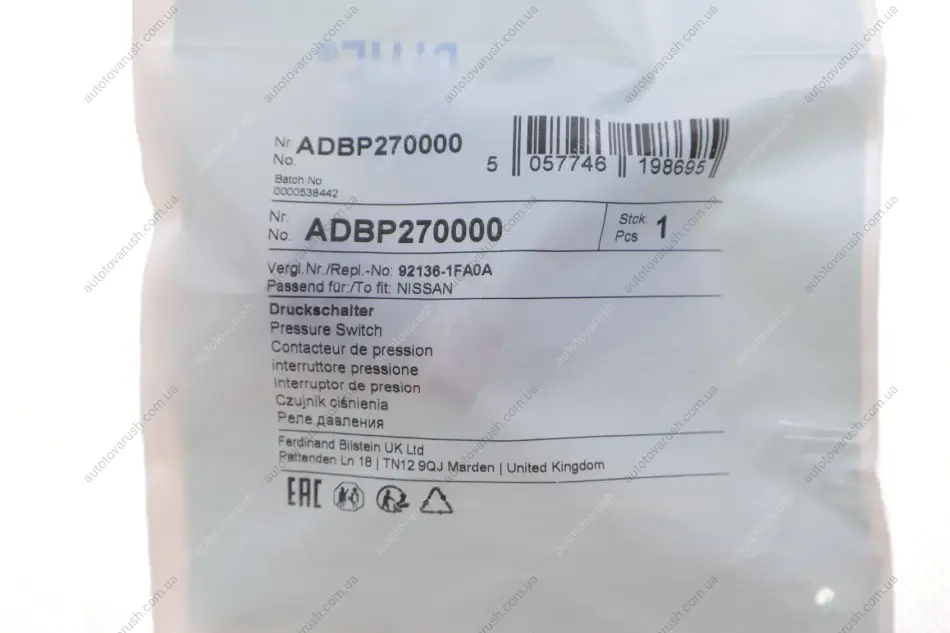 ADBP270000 BLUE PRINT Датчик тиску кондиціонера Nissan Juke/Qashqai/X-Trail 1.0-4.0 01-