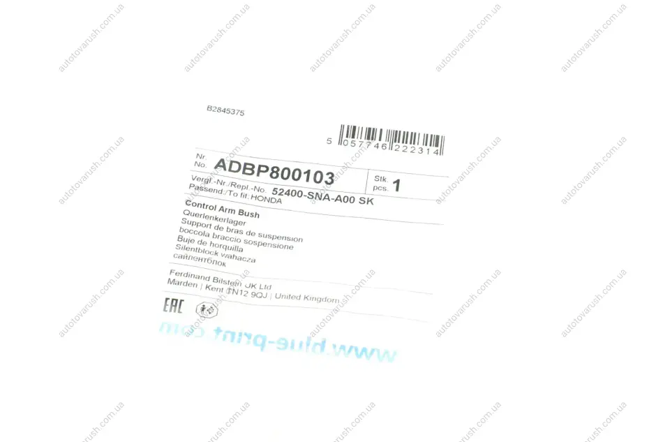 ADBP800103 BLUE PRINT Сайлентблок важеля (заднього/зверху) Honda Civic 05- задня вісь двостороння