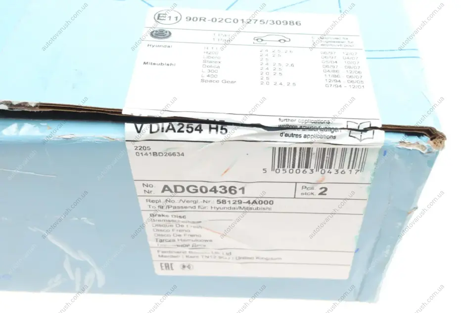 ADG04361 BLUE PRINT Диск гальмівний (передній) Mitsubishi L300/L400/Hyundai H-1/H200 1.6-3.0 90-13 (254x24.6) передні