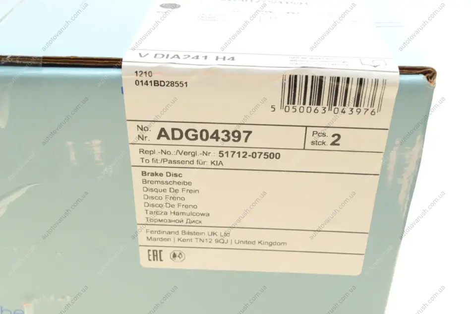 ADG04397 BLUE PRINT Диск гальмівний (передній) Hyundai i10 07-16/Kia Picanto 04- (241x18) передні
