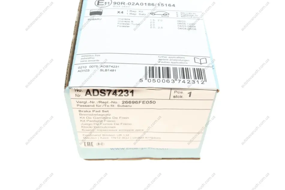 ADS74231 BLUE PRINT Колодки гальмівні (задні) Subaru Impreza 99-/Forester 02-12/Saab 9-2X 04-06 задні