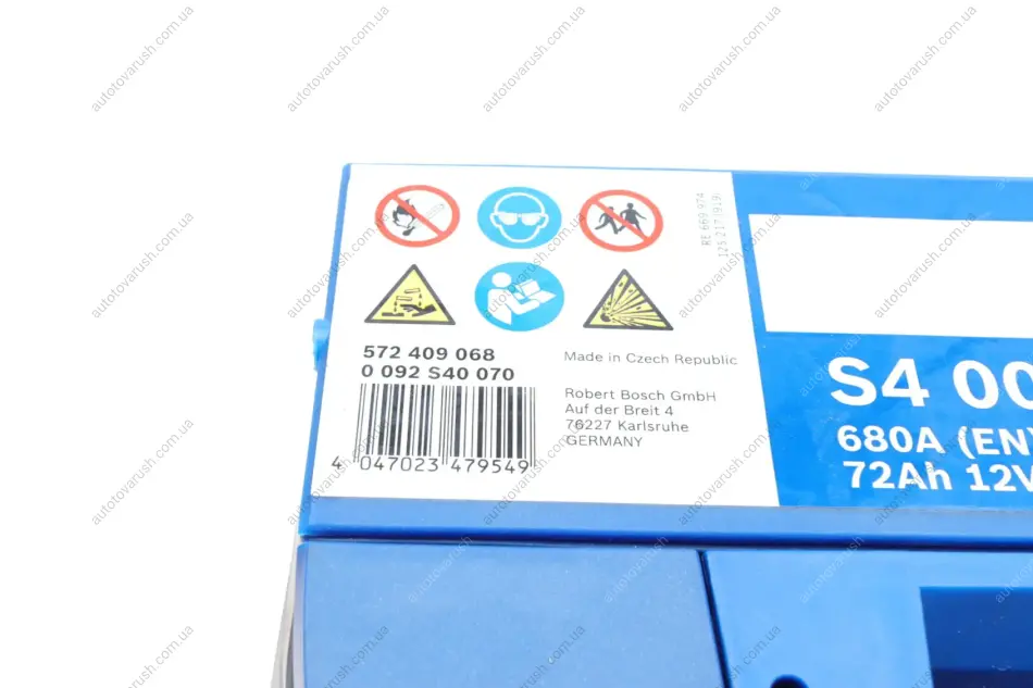 0092S40070 BOSCH Автомобільний акумулятор Bosch S4 Silver 0092S40070 72Ah 680A R+