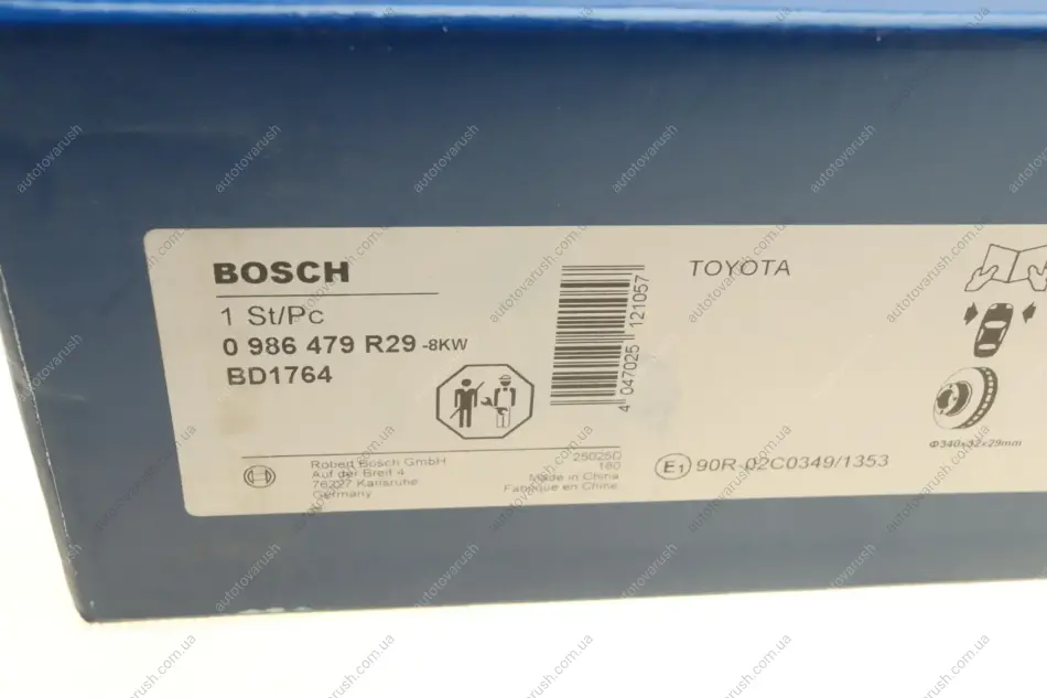 0 986 479 R29 BOSCH Диск гальмівний (передній) Toyota Land Cruiser 200 4.5 D/4.6/4.7 V8 07- (340х32)
