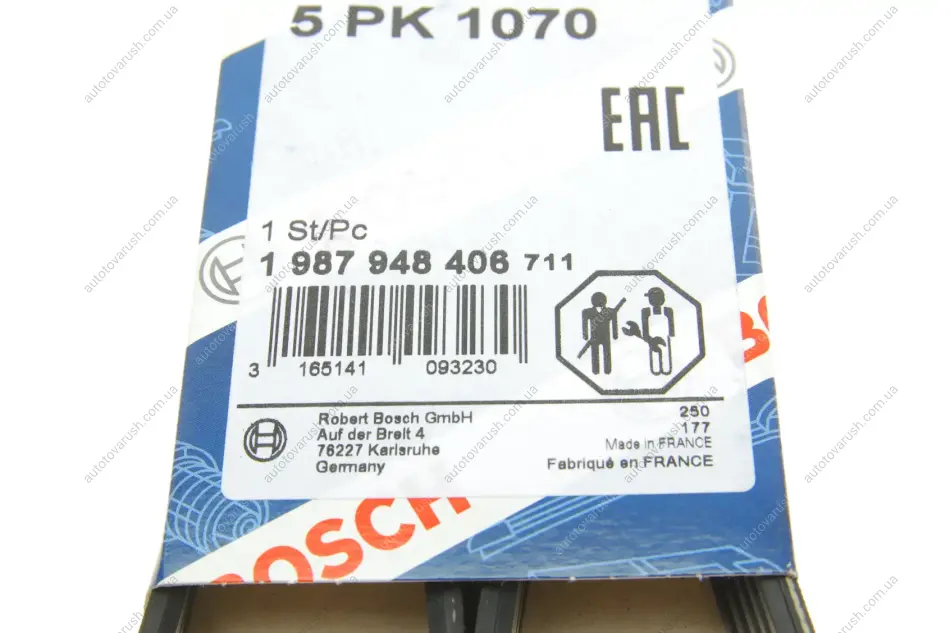 1 987 948 406 BOSCH Ремінь генератора Mitsubishi Galant/Lancer 95-04/Toyota Corolla 1.3 84-97 (5PK1070)