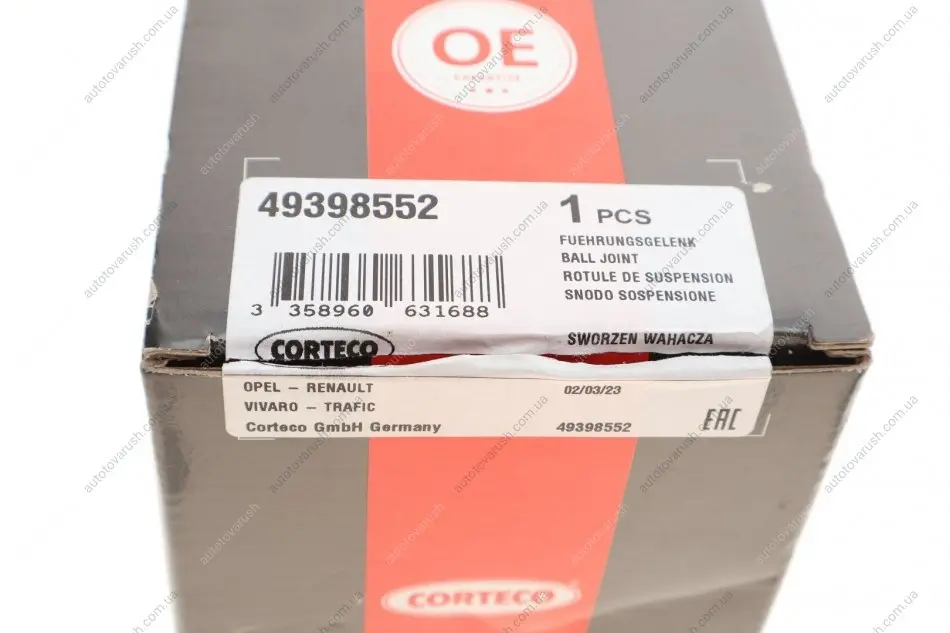49398552 CORTECO Опора кульова (передня/знизу) Renault Trafic/Opel Vivaro 01- передня вісь. двосторонньо