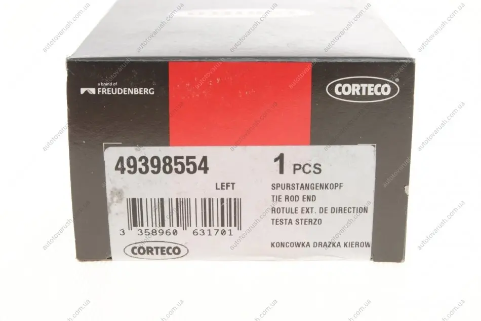 49398554 CORTECO Наконечник тяги рульової (L) Renault Kangoo 97- (L=90mm) передній міст зліва
