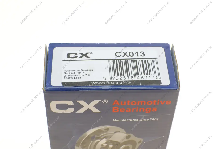 CX – це бренд підшипників (скорочено від Complex), що належить польській компанії Automotive Bearings Sp. z o.o. Sp. Бренд спеціалізується на вузькому сегменті запчастин, а саме на виробництві підшипників/роликів на 9 заводах у Польщі з головним підприємством у місті Лодзь. Каталог CX включає понад 5 тисяч номенклатурних одиниць на понад 80% автопарку: підшипники маточок, ролики натягувача, обвідні, ролики генераторів, підвісні підшипники та інші.