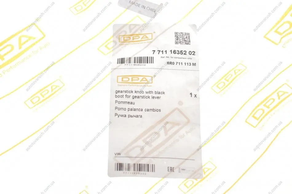 77111635202 DPA Ручка КПП з пильником чорний 5 ступів VW Polo (09-14) (77111635202) DPA