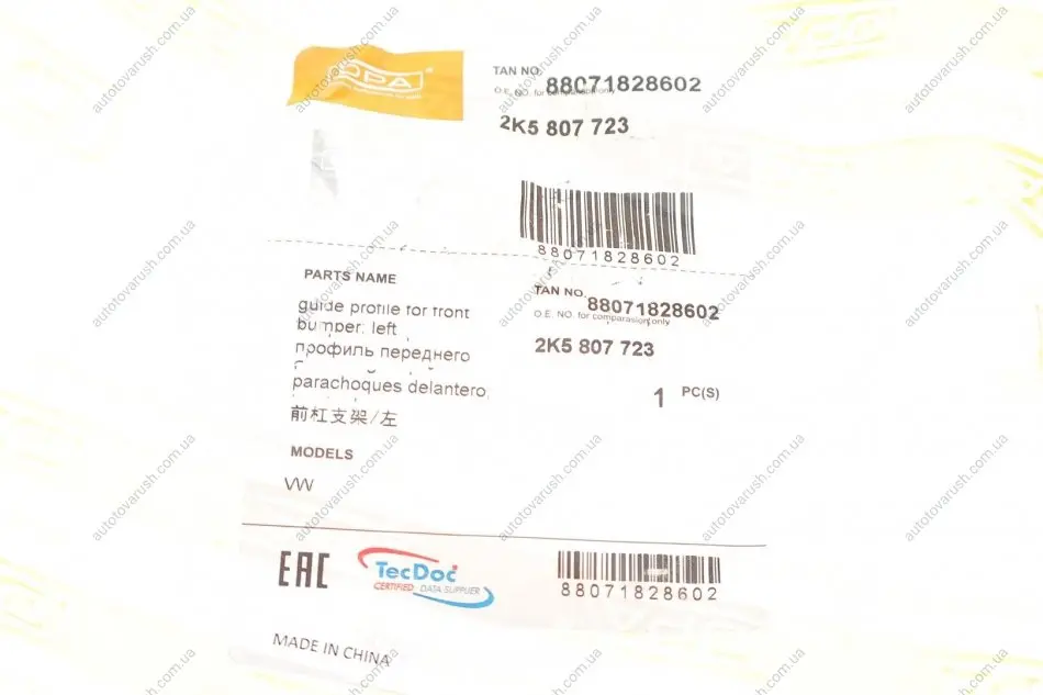 88071828602 DPA Кронштейн кріплення бампера (переднього/L) VW Caddy IV 15-20 ліворуч