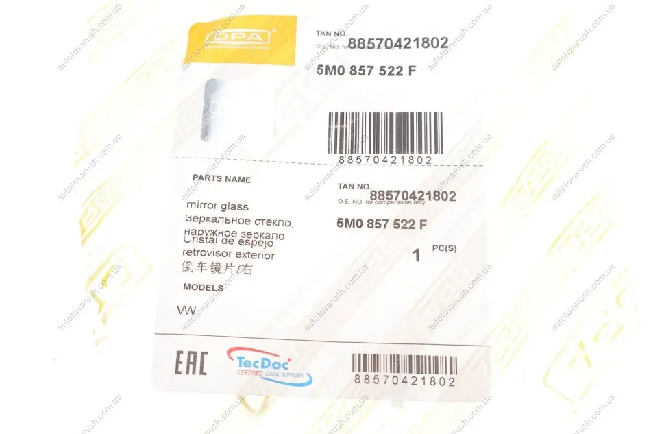 88570421802 DPA Скло дзеркала справа