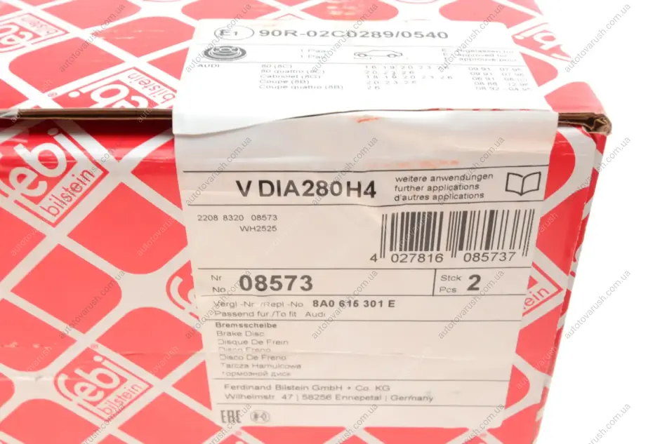 08573 FEBI BILSTEIN Диск гальмівний AUDI 80 передн., вент. (вир-во FEBI) передні