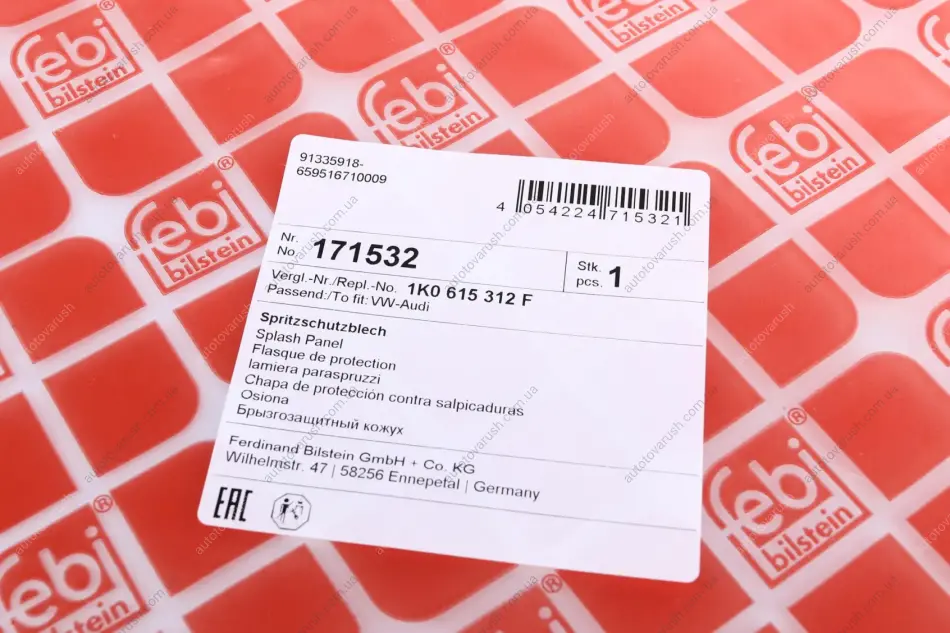 171532 FEBI BILSTEIN Захист гальмівного диска передній міст праворуч