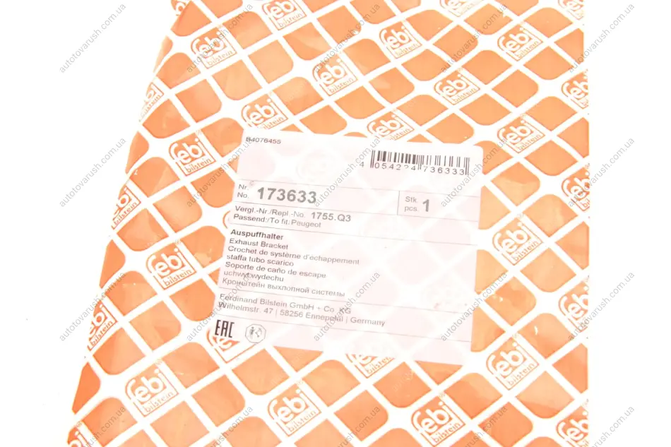 173633 FEBI BILSTEIN Кронштейн кріплення глушника (средний) Citroen Berlingo 96- посередині