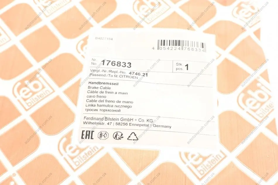 176833 FEBI BILSTEIN Трос ручника Citroen C4 Picasso 06-13