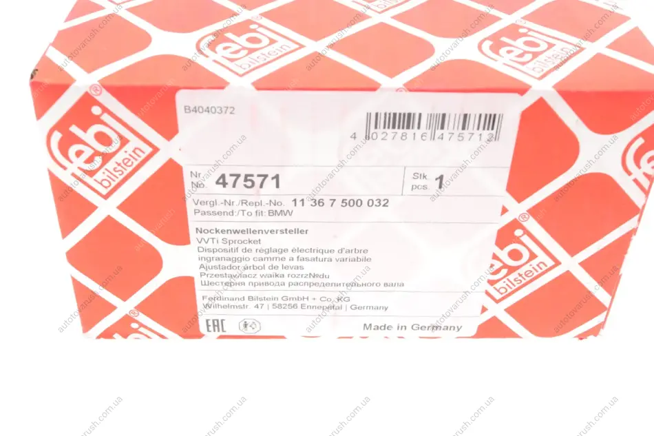 47571 FEBI BILSTEIN Шестерня розподільного валу BMW 3 (E90/E46)/X3 (E83) 00-15 (фазорегулятор) (N45/N46) (впуск) сторона впуску