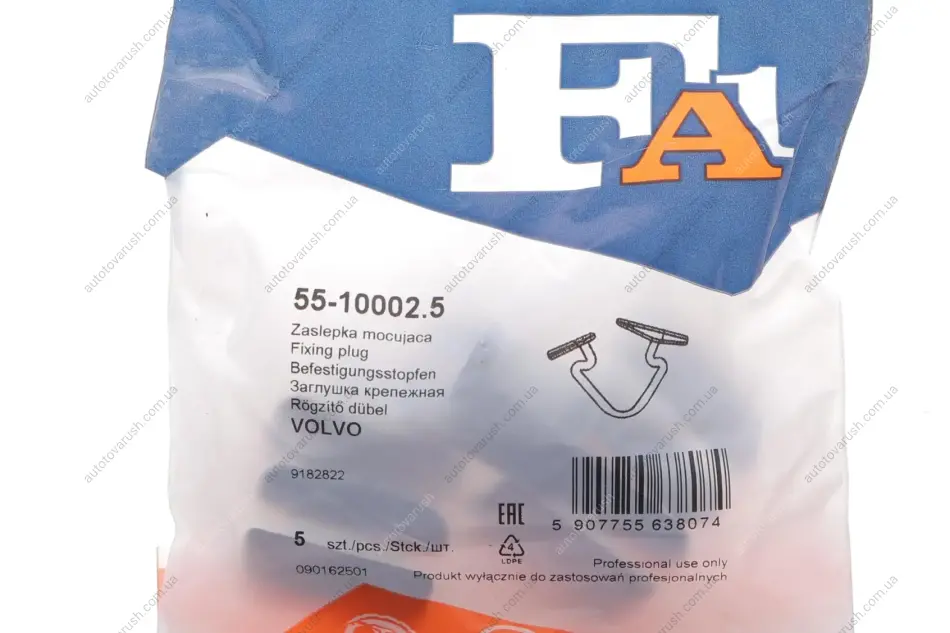 55-10002.5 Fischer Automotive One (FA1) Кліпса (пістон) кріплення обшивки капоту (к-кт 5 шт) Volvo C30/C70/S40/S80/V40/V60/V90/XC70 95-21
