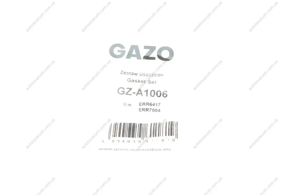 Gazo - бренд який є провідним виробником автомобільних запчастин у Польщі. Компанія виробляє деталі двигуна для систем упорскування CR (Common Rail), такі як: паливопроводи, перепускні шланги, прокладки, підкладки, а також комплекти для збирання та ремонту легкових автомобілів та автофургонів – поточна виробнича програма постійно розширюється. Багаторічний досвід продажу та знання двигунів внутрішнього згоряння дозволили швидко адаптувати продукцію до потреб ринку.