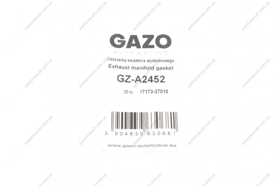Gazo - бренд який є провідним виробником автомобільних запчастин у Польщі. Компанія виробляє деталі двигуна для систем упорскування CR (Common Rail), такі як: паливопроводи, перепускні шланги, прокладки, підкладки, а також комплекти для збирання та ремонту легкових автомобілів та автофургонів – поточна виробнича програма постійно розширюється. Багаторічний досвід продажу та знання двигунів внутрішнього згоряння дозволили швидко адаптувати продукцію до потреб ринку.
