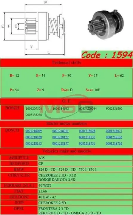 1594 GHIBAUDI Бендикс стартера