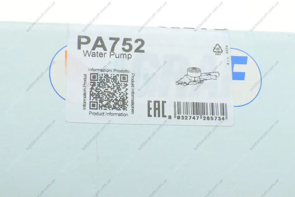 PA752 GRAF Помпа води MB C-class (W202/S202/W203/S203)/E-class (W210/S210) 2.2/2.7CDI 97-09 (B/B) (6 лоп)
