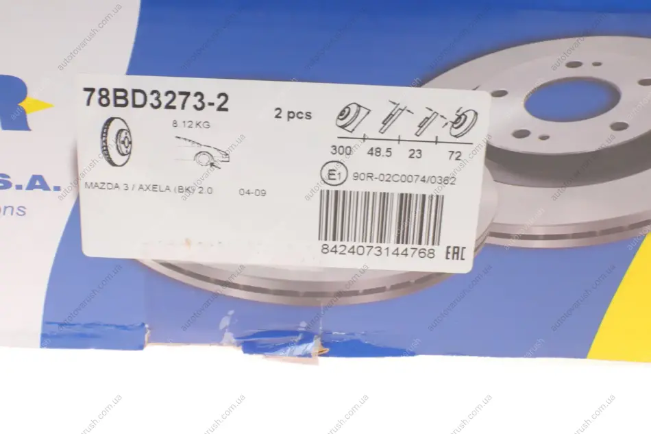 78BD3273-2 ICER Диск гальмівний (передній) Mazda 3 03-14/Mazda 5 05- (300x25) (з покриттям) (вентильований)