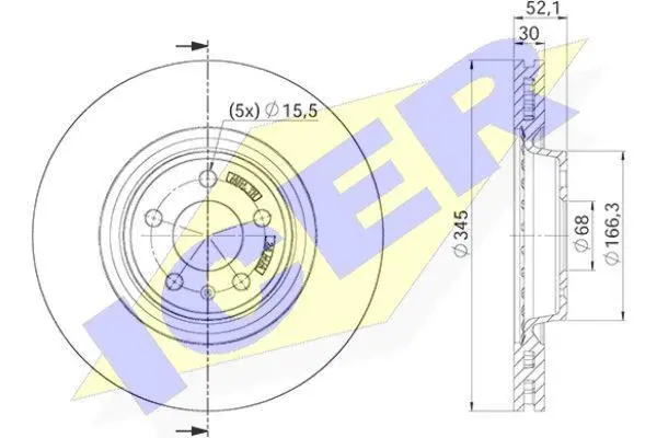 78BD4150-2 ICER Диск гальмівний (передній) Audi A4 07-/Q5 08-/Porsche Macan 14- (345х30) (з покриттям) (вент.)